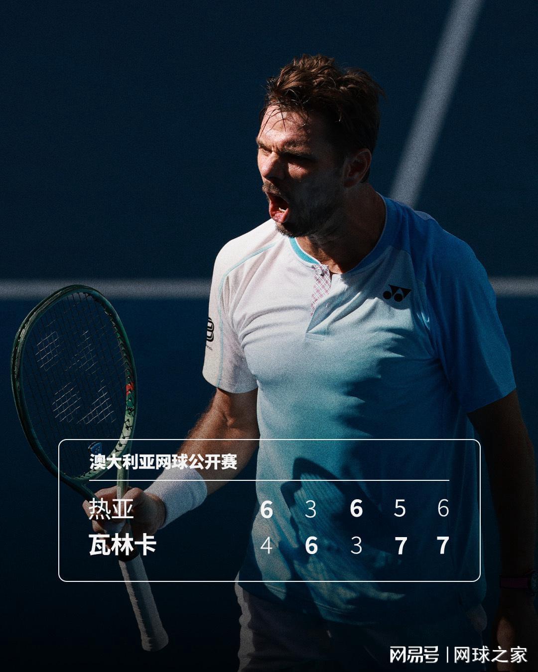 昨天的澳网男单第二轮,还有两个月就年满41周岁的瓦林卡耗时4小时32分钟,以4-6 6-3 3-6 7-5 7-6(3)击败21岁的法国资格赛球员热亚,自2023年美网以来重返大满贯单打32强,同时也在时隔六年之后重返澳网单打32强。
